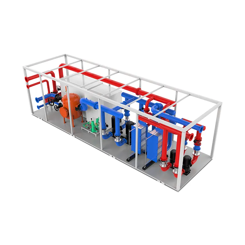 Блочно-модульный теплоисточник KAZIS для вспомогательного оборудования состоит из многофункционального теплообменного модуля, циркуляционных насосов, пластинчатого теплообменника, первичного расширительного бака, модуля вторичных циркуляционных насосов, вторичного подпиточного насоса, грязеуловителя, умягчителя воды, бака умягченной воды, шкафа управления, интеллектуального шкафа управления (опционально), контрольной панели газовой сигнализации, взрывозащищенного осевого вентилятора, системы освещения, дренажной системы, трубопроводов, дымохода (опционально), арматуры, приборов, электрических кабелей, контейнера и других компонентов.