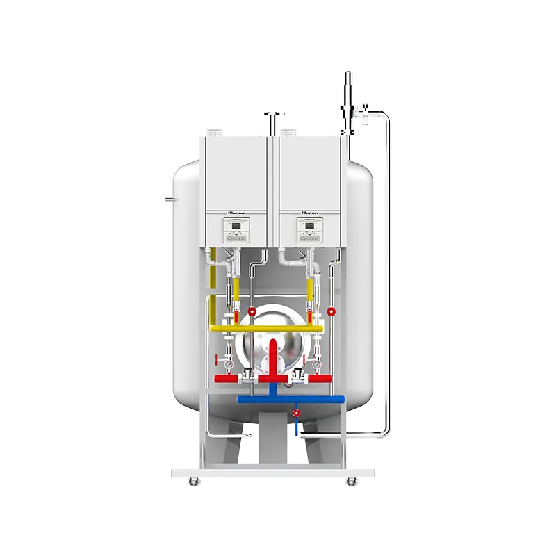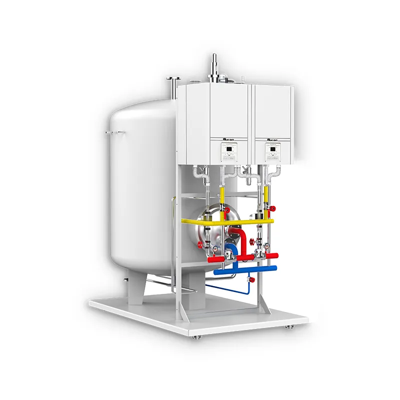 Газовый котел водонагревательный емкостной KAZIS состоит из полностью предварительного смешения высокоэффективного конденсационного газового водонагревательного котла, циркуляционного насоса котла, расширительного бака, полуемкостного теплообменника, интеллектуального шкафа управления (опционально), арматуры, приборов, трубопроводов, основания и других компонентов.